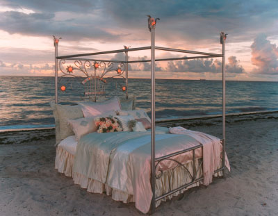 The metal bed was on display in the window at Andrea’s Las Olas Linens and Bath, a high-end bed linen store in Fort Lauderdale.